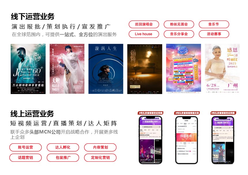 广州市风林火山文化娱乐深耕演出行业15年,操盘超2000场项目,覆盖50余座城市,提供全产业链演出服务,并携手禾光飞扬打造多场爆款演唱会。名人集团与其强强联合,共同投资林俊杰、张靓颖、王源、张云雷、孟佳、王栎鑫等艺人演唱会,深度整合资源,共创高品质演艺项目。